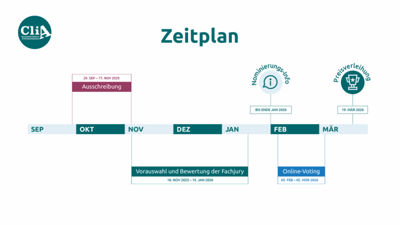 - Die Auszeichnung der Siegerprojekte erfolgt im Rahmen einer feierlichen Veranstaltung am 19. März 2026 in Wien.